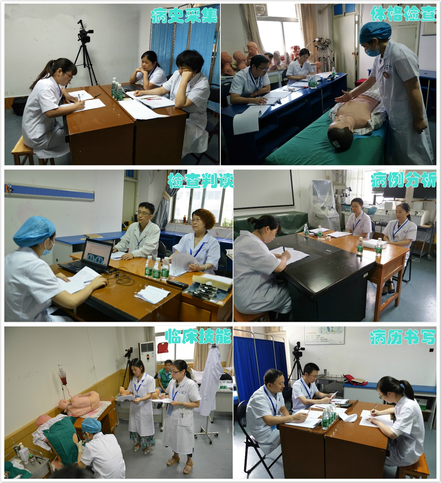 考核严格按照湖南省卫计委要求设定考站,全部采用OSCE考核模式,考核内容分病史采集、体格检查、辅助结果判读、病例分析、临床技能操作、病历书写6个考站,从不同层次强调检验住院医师是否具备必需的临床基本知识和基本技能,是否能够综合运用这些知识和技能安全有效规范地从事临床诊疗活动的能力以及规范的临床操作技能和独立处理本专业常见病、多发病的能力。