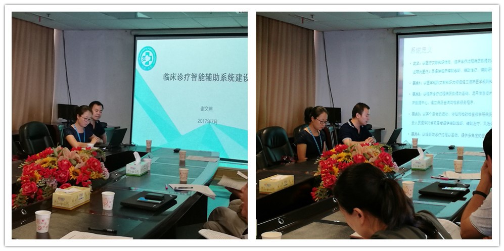 科研部副主任谢文照汇报了临床诊疗智能辅助系统建设方案。临床诊疗智能辅助系统建设的目的是为降低临床医疗错误,为医学水平较低的医生、专家级医师以及患者这三类人群提供服务。系统建设的核心是构建基于规则知识和病例知识的临床医学知识库,并在此基础上提供医学知识管理平台、电子病历智能检索、临床辅助诊疗等应用功能。刘杰荣高级工程师从技术的角度解释临床诊疗智能辅助系统建设的技术关键点。