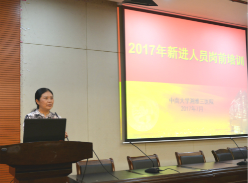 陈方平院长致欢迎词。他对新同事加入湘雅三医院这个大家庭表示热烈的欢迎,并简要介绍了医院的基本情况,展望了医院的发展前景。同时,他也对在场的新进人员寄予了四点希望:一是要志存理想,实现人生价值。医学事业与人类的健康密切相关,值得医务工作者们为此拼搏奋斗、不断探索;二是要爱岗敬业,无私奉献。医学是一门崇高而神圣的职业,需要大家扎实努力,争做一名好医生好护士,矢志不渝地投身到卫生与健康事业中;三是要不断学习,勤奋踏实。在医学求知的道路上,要保持不断学习的良好习惯,不仅学习书本中的理论知识,还要总结实践中的宝贵经验;四是要有奉献精神。医者仁心,在这个信息化时代,医学模式不断转变,但网络交流无法代替医务人员的人文关怀,一个优秀的医务工作者,必须要有无私奉献的爱心。