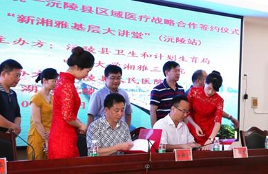7月15日,由湘雅三医院党委副书记邓云龙教授带队,医院有关科室党员干部和农工民主党湘雅三医院支部骨干成员组成的“新湘雅强基层专家志愿团”走进沅陵,举行了大型义诊和“新湘雅基层大讲堂(沅陵站)”专题讲座。中南大学湘雅三医院与沅陵县卫生和计划生育局、沅陵县人民医院同时举行了帮扶签约仪式,湘雅三医院党委副书记邓云龙与沅陵县卫计局副局长全新洪签署区域医疗帮扶协议,与沅陵县人民医院院长刘建设签署医联体合作协议,正式启动“湘雅三医院—沅陵县级医院-乡镇卫生院”三位一体的区域医疗联合体。
