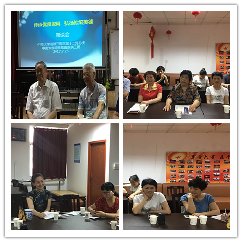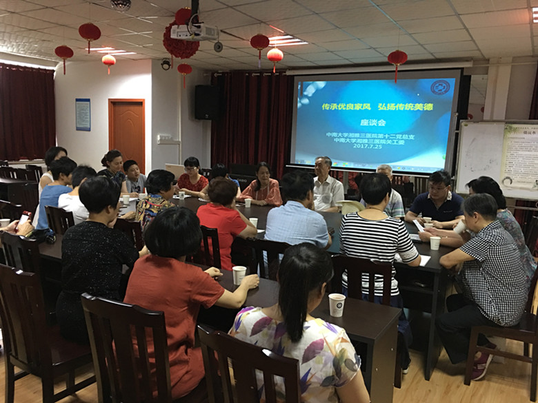 近日,第十二党总支和医院关工委办公室在离退休活动室联合开展了以“传承优良家风,弘扬传统美德”为主题的座谈会,学习贯彻习近平总书记关于家风建设的系列重要讲话精神。部分离退休党员代表、青年团干代表、职工子弟代表空巢家庭代表、失独家庭代表近30人参加了此次活动。