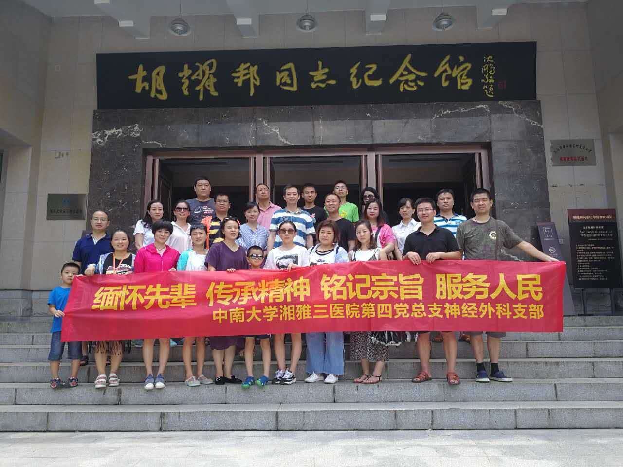 8月20日,第四党总支神经外科支部全体党员在王知非书记的带领下开展了“缅怀先辈、传承精神、铭记宗旨、服务人民”主题党日活动,共同瞻仰了位于浏阳的胡耀邦同志故居和陈列馆,实地接受了一次深刻的革命传统教育。
