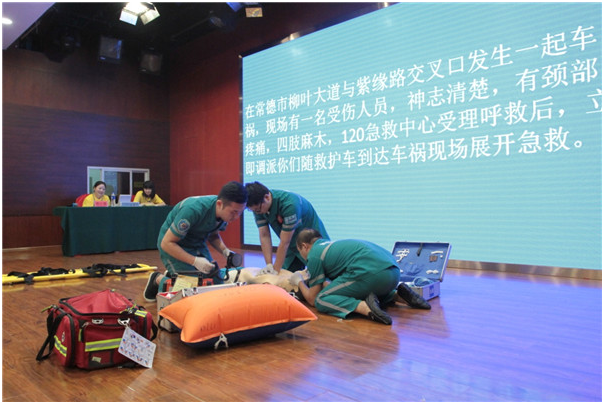 学术活动期间,在8月25号下午两点半,湖南省院前急救专业委员会还举办了湖南省第二届院前急救技能竞赛,也是省内首次开展的情景模拟比赛。湖南省医学会朱建华秘书长作为特邀嘉宾宣布本次比赛开始。此次技能竞赛共有分别来自全省各地州市的13个代表队参加比拼。竞赛场上,参赛队员准备充分,配合默契,经过激烈的角逐,最终常德代表队获得特等奖,湘潭和岳阳代表队并列一等奖。