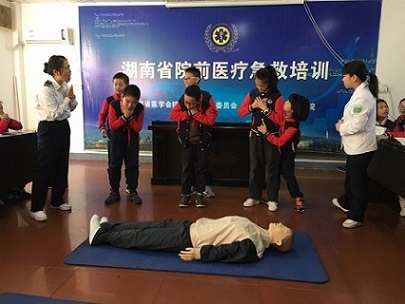 为了在校园普及应急救护知识,提高中小学生自救互救能力,10月20日下午,湘雅三医院120急救中心在120二楼培训室对博才咸嘉小学六三班54名同学进行了急救知识培训。