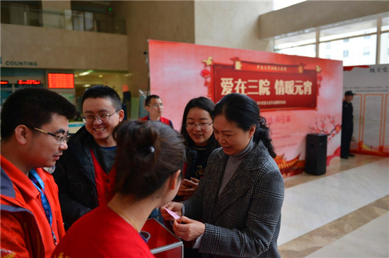 3月2日正值正月十五元宵佳节,湘雅三医院外科楼大厅充满了欢声笑语,青年志愿者们为了让医务人员和病友们感受到节日的氛围,精心筹备了“爱在三院 情暖元宵”青年民俗文化节志愿服务活动。