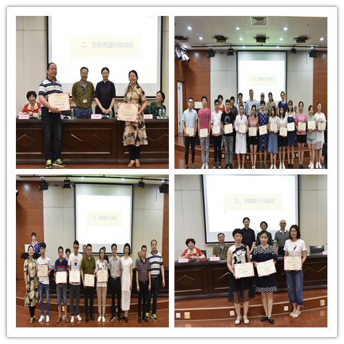 党委副书记、关工委副主任邓云龙教授宣读了《关于表彰2017-2018年度“立德修身 诚信为本”主题教育活动征文优秀组织奖和优秀论文奖的决定》。院团委、研究生党总支获得优秀征文组织奖,邓开心等3人荣获一等奖,肖睿等5人荣获二等奖,高俊等14人获得三等奖。党委书记、关工委主任罗爱静、党委副书记邓云龙以及离退休党支部书记、征文评审专家以及特邀党建组织员分别为受表彰的先进集体和获奖个人代表颁奖。