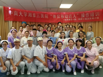 7月28日,由中南大学湘雅三医院危急重症、压疮及科研小组举办的“体位移动达人”操作培训活动在外科楼19楼会议室举行。危急重症护理小组组长刘佳,压疮护理小组组长龚丽娜,护理科研小组组长谢建飞等现场指导,各小组成员及36病室护士等40余人参与活动。