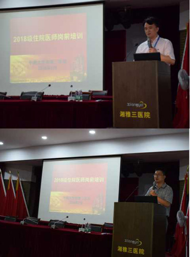 仪式结束后,老师们为新进住院医师进行了精彩纷呈的授课。纪委副书记李寿森、医务部主任范自力、普通外科学知名教授刘浔阳老院长、皮肤科黄进华教授、第十一党总支书记罗海波、住培部主任姚晨姣、医务部副主任常维夫、医保办主任熊灿娟、医务部副主任严文广、院感中心副主任曾赛男、研究生部主任袁秀洪、医院消防安全员、医务部副主任彭兰从医院临床实际出发,就遵纪守法与廉洁行医、医疗核心制度、湘雅传统与三院建设、医患沟通技巧、新时代个人理想与社会理想的交织、住院医师规范化培训管理、医院行风建设、全民医保政策解读、医疗安全事故的防范、医院院感的预防与控制、研究生教育管理、消防安全知识、依法执业和传染病防治与疫情报告制度等方面给住院医师带来了精彩的课程。