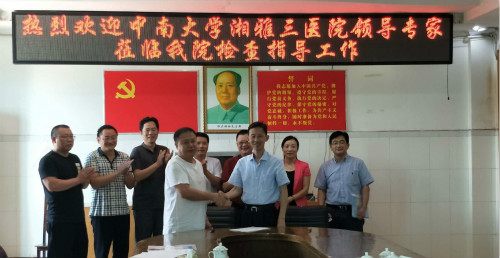 8月8日上午,中南大学湘雅三医院院长张国刚、副院长欧阳文以及社会服务部主任赵颜忠、医务部副主任常维夫一行受邀到岳阳市屈原管理区人民医院实地考察指导,共商医联体建设及与“新湘雅远程”平台对接等具体事宜。屈原管理区管委会常务副区长田荣、区卫计局长吴慧并与屈原管理区人民医院周尚斌院长及有关人员出席并参与座谈。