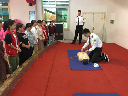 首先,刘作良老师为大家阐述了急救的重要性以及急救在幼儿园的特点,在幼儿园开展急救培训的意义和迫切性。接着李守根老师从案例入手,对如何正确拨打120、心肺复苏、气道异物梗阻、溺水、小儿抽搐等急救基础知识进行了深入浅出的讲解。之后培训老师们情境模拟演示了心肺复苏和异物梗阻正确的施救方法——“海姆立克急救法”。幼儿园教职员工积极上台,在老师的指导下,进行了心肺复苏练习。