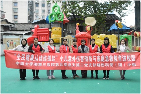 11月7日上午九点,烧伤科党(团)小组一行九人在第五党总支书记余智萍的带领下走进开福区第四幼儿园开展了一次“安全教育从娃娃开始,健康服务进校园”的安全与急救知识的科普活动。