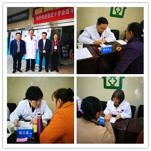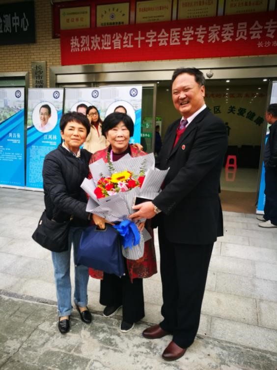原院长黄祖发教授是湖南省红十字会专家委员会主席,负责湖南省红十字会健康助老扶贫工程,面向社区卫生服务中心积极探索高血压、心脑血管疾病、糖尿病、等慢性病防治工作,这次义诊是健康助老扶贫工程内容之一。参加义诊的4名教授都是退休党员,他们退休后主动参加医疗公益活动,为人民健康事业作贡献。国家级名老中医,全国第三批、第五批名老中医药专家学术经验继承指导老师董克礼教授向观沙岭社区卫生服务中心负责人介绍了“颐养代医”的理念,推广中医适宜技术;曾荣获“林巧稚医师奖”的周昌菊教授生动地解释了常见妇科病知识;消化内科教授沈守荣结合高血压糖尿病知识讲解消化道疾病的预防和保健知识。