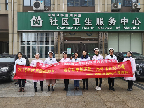 2018年11月21日是第17个世界慢阻肺日。今年的主题是:“治疗从来都不早,治疗从来都不晚”,即慢阻肺要早诊断、早治疗,延缓疾病进展。11月21日上午,中南大学湘雅三医院呼吸与危重症医学科刘纯副主任医师、林桦主治医师、周妍主治医师、何志萍护士长等在梅溪湖社区卫生服务中心举行义诊活动。
