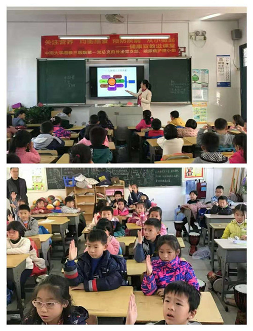 为了让孩子们具有正确的饮食营养观念,培养学生良好的饮食习惯,预防因膳食不当等生活方式不良带来的疾病,11月23日,中南大学湘雅三医院第一党总支内分泌党支部成员及医院糖尿病护理小组成员来到长沙市岳麓区博才咸嘉小学,为小学生们讲授了“小学生饮食与健康”的健康知识讲座。