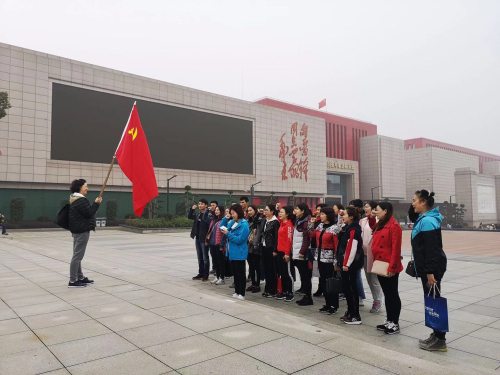 在雷锋同志塑像前,党支部书记万晶晶带领大家重温入党誓词。