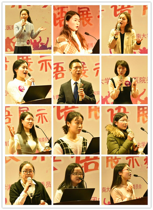 经过层层选拔和培训,共有12位来自不同科室的选手进入决赛,选手们通过自我介绍、“Love in Xiangya”主题演讲、才艺展示等方式表达自己对工作与生活的热爱,其中才艺展示又包括英文朗诵、电影配音、演唱英文歌曲等,现场高潮不断,掌声迭起,选手们带来了一场视听盛宴。