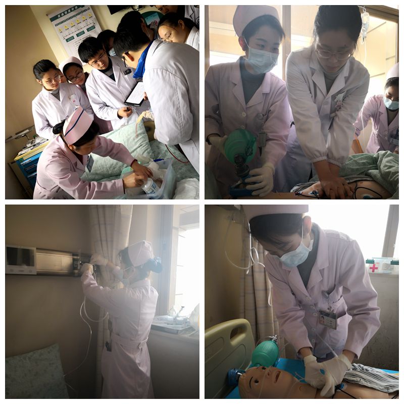 本次演练采取故事情节模拟的形式,分别模拟了患者突发呕鲜红色血液400ml及患者突然出现意识丧失、心跳呼吸骤停两个情节。演练中,医护人员投入抢救迅速,协同合作紧张有序,显示出对抢救流程及技能的熟练掌握。