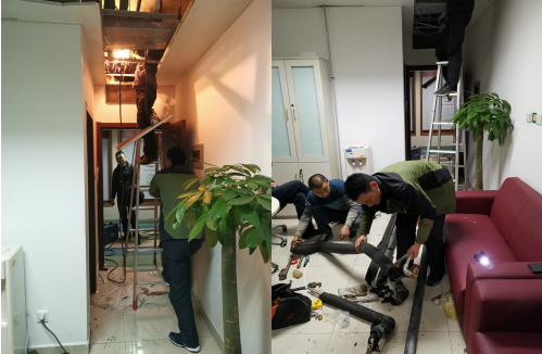 根据维修工作的特点,后勤保障部有计划、有安排的组织人员对所有医疗、办公楼公共设施进行排查检修。利用医疗区下班的时间,水暖班班长施海石晚上组织人员对健康管理中心中央空调进行抢修改造,全班人员不畏辛劳,通力配合,一直工作到凌晨两点,对楼内空调管道进行了更换,保障了第二天医疗区的正常运行。