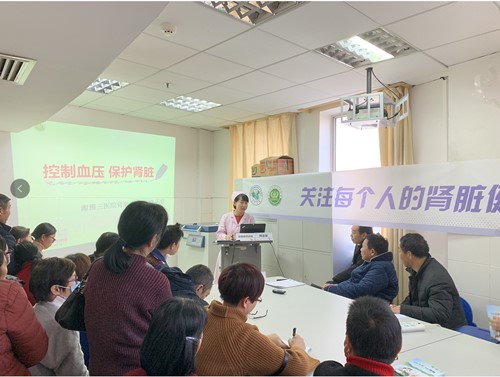 3月13日下午,肾病护理小组在科室会议室开展两场健康教育讲座,邀请住院患者参与讲座活动。护士长蒋娟、主管护师周正蓉围绕“控制血压,保护肾脏”主题分别现场授课,告知患者监测血压的重要性,不能随意停减降压药,必须严格遵医嘱服药。