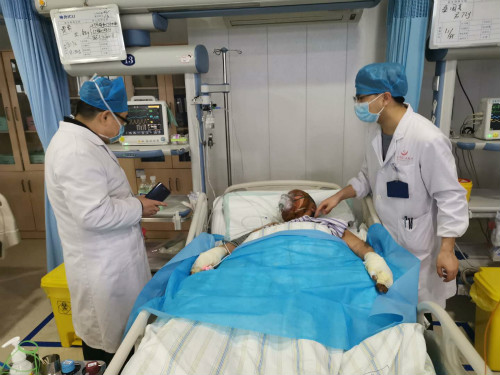 贺全勇与彭浩接到通知立即驱车赶往常德。凌晨1点至4点,在常德烧伤医院和常德市第一人民医院对22名事故伤员进行了伤情评估,并在向省卫健委领导汇报后制定了初步诊疗计划。23号上午9点至10点,再次对常德市第一人民医院的8名危重伤员进行伤情评估,床旁指导救治。