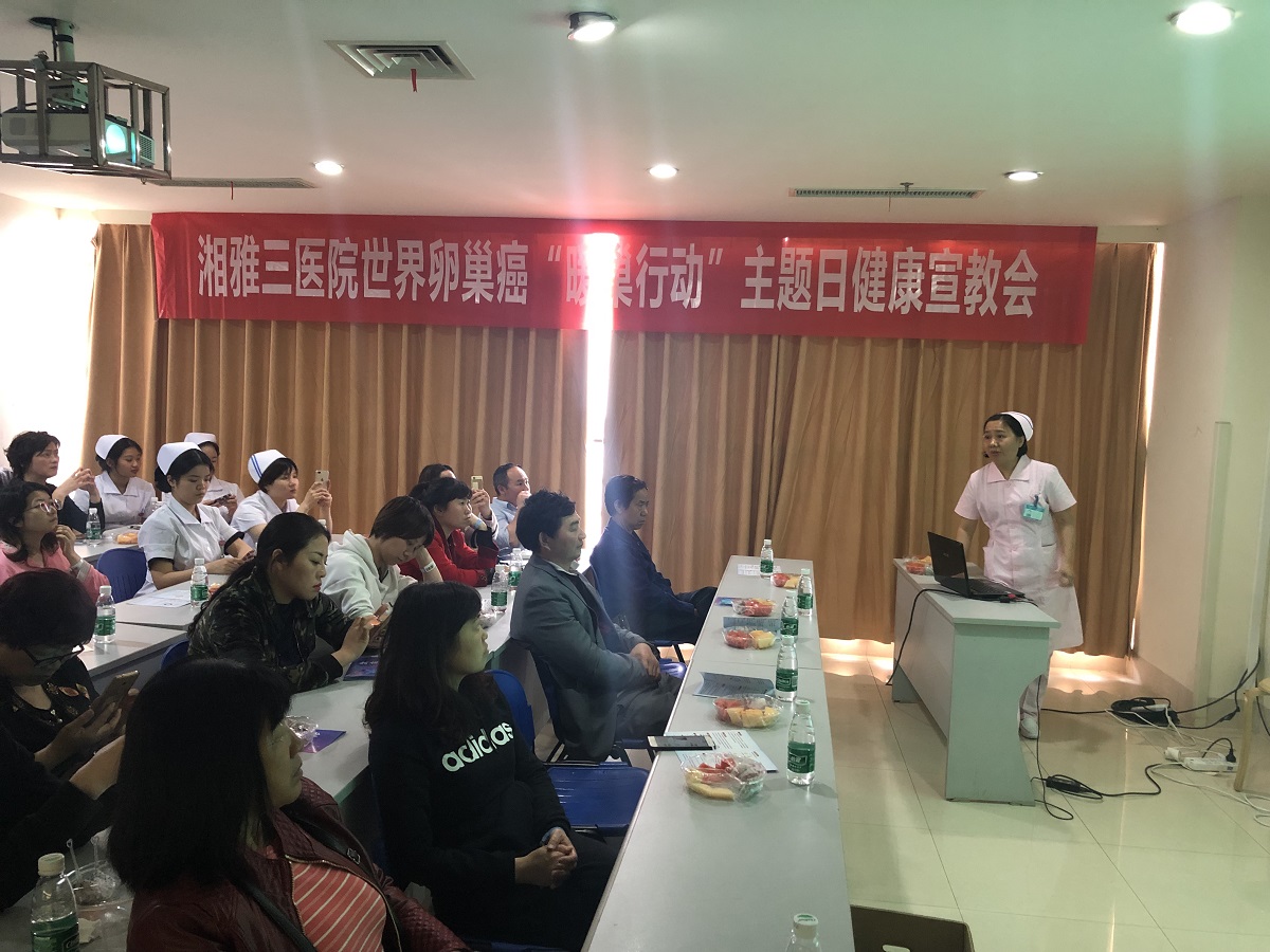 会议共分为两个环节:“卵巢癌全程管理”和“做更好的我--卵巢癌患者日常生活指导”,分别由中南大学湘雅三医院妇科副主任曾飞教授和22病室刘清护士长进行宣讲。