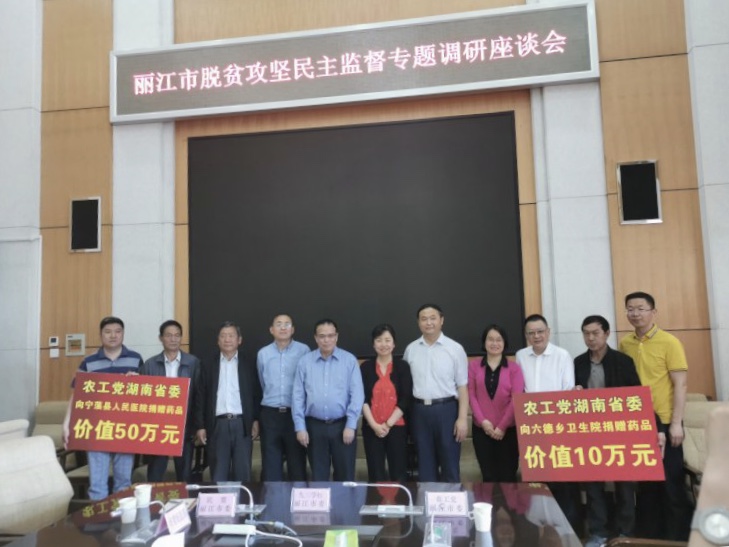 对口云南省丽江市脱贫攻坚民主监督工作是农工党中央2017年交给农工党湖南省委的一项重要任务,2019年5月12日至14日,农工党湖南省委副主委、中南大学湘雅三医院院长张国刚,农工党湖南省医卫委副主任、湘雅三医院支部主委,消化内科王芬教授等赴云南省丽江市开展脱贫攻坚民主监督调研及帮扶活动。