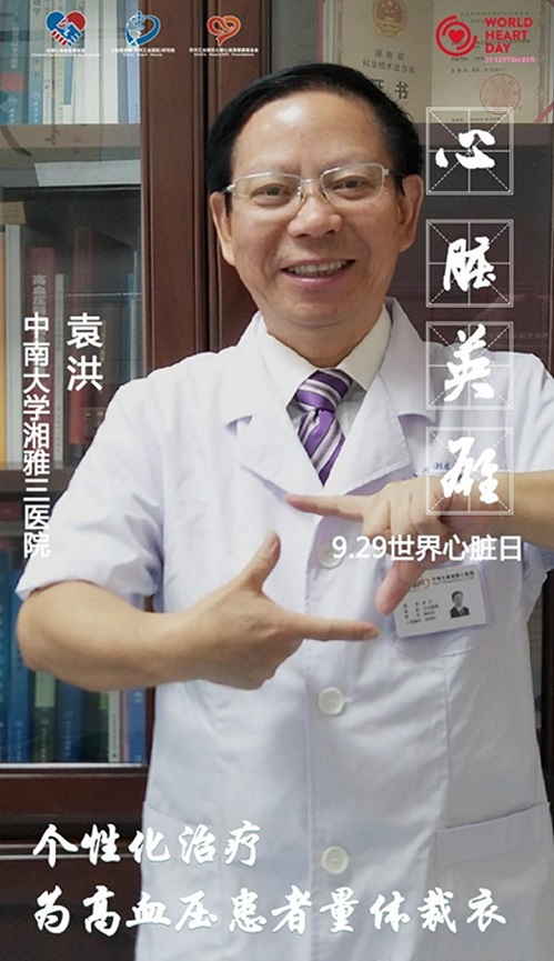 在2019年世界心脏日即将来临之际,9月19日,中国心血管健康联盟举办世界心脏日 “百位心脏英雄”评选并进行展播,湘雅三医院袁洪教授获此殊荣。