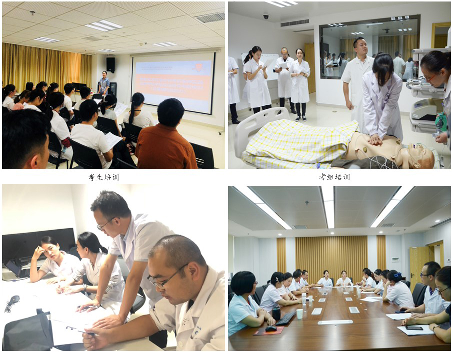“模拟虚拟技术在专科医师资质考核中的应用研究”项目系列由国家医学考试中心组织,旨在研究、探索模拟虚拟技术在各专科医师考核及培训中的应用,助力专科医师规范化培训及专科医师准入制度的建立。其中“急诊专科医师的危重症抢救能力实践技能考核”项目由北京协和医院牵头,湘雅三医院作为协同单位之一受邀参与。医院严格按照国家医考中心要求,在急危重症科、心血管内科、麻醉科、肾内科等大力支持下,成立了由督导、考官、标准化组员、考务、考辅人员组成的考核团队,32名急诊及危重症规培医师自愿参与了项目,在考前接受了统一的培训。