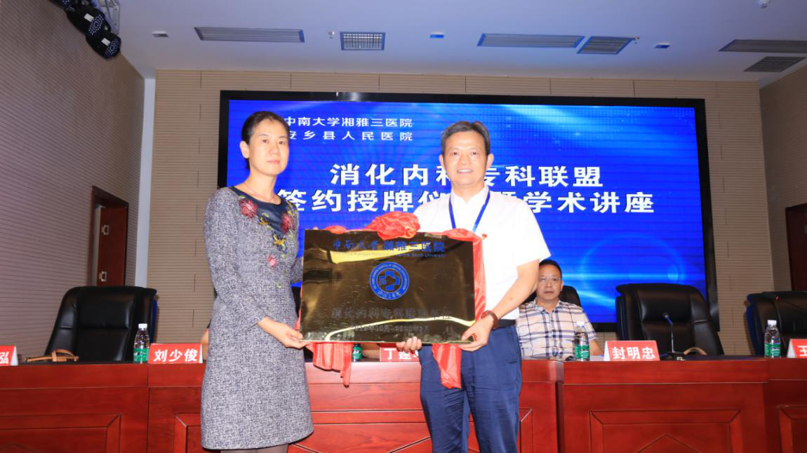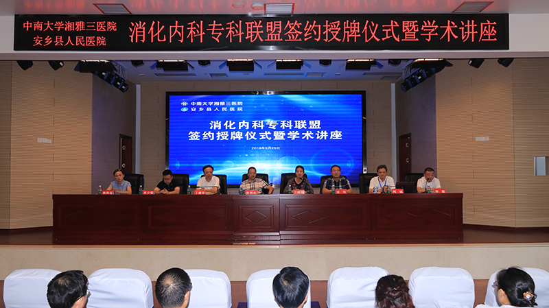 9月25日,中南大学湘雅三医院与常德安乡县人民医院签订《中南大学湘雅三医院公立医院(消化内科)专科联盟合作协议》并举行授牌仪式,将定期开展专家查房、学术讲座。
