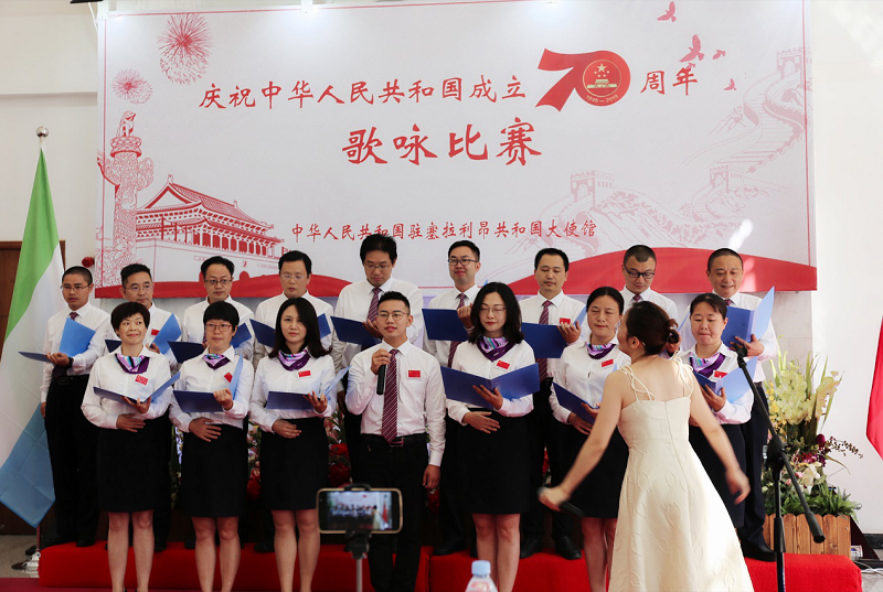 湘雅三医院三名援塞拉利昂医疗队队员罗卓琼、赵孟文和曹燕娜在塞拉利昂参加系列国庆庆典活动,以自己的方式祝福祖国70华诞。