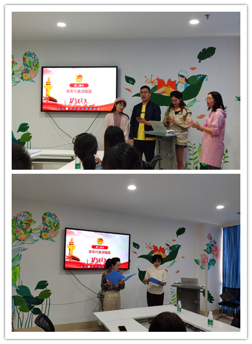大家集体学习了习近平总书记庆祝中华人民共和国成立70周年系列重要讲话精神,对中华人民共和国成立70年的光辉历程、伟大成就和宝贵经验有了深刻认识。孙慧蓉、程海威结合医院工作及自身实际畅谈了伟大祖国、幸福三院带来的变化与成长。第四团支部副书记米冬为祖国献礼演唱了《今天是你的生日》,第三团支部团干皮思敏、李芯榕朗诵了爱国诗歌《我的南方,我的北方》,表达了三院团员青年对祖国的热爱之情,将活动气氛推向高潮。