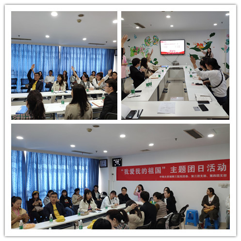10月18日,湘雅三医院团委“青年面对面 共话共青团”第四期暨第三、四团支部“我爱我的祖国”主题团日活动在外科楼19楼会议室举行。第四党总支书记孙慧蓉,院团委书记程海威,院团委副书记邓渲桐、李潇潇及部分团委委员、各团支部书记,第三、四团支部主要团干、团员青年代表参加活动。