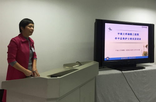 严谨主任为启动仪式致辞,她从健康中国、健康湖南的视野,从医院管理的角度强调了心血管疾病防治的重要性,以及医院应急护士卒中小组成立的必要性与重要性。她鼓励大家,卒中小组定将在医院的大力支持下成长为一支具有过硬的专业素养以及国际化视野的优秀队伍。