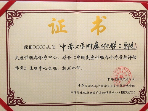 IBD区域诊疗中心由中华医学会消化病学分会学组发布的《建立我国炎症性肠病的诊治中心质量控制指标的共识》推动建立,旨在为IBD患者提供高效、规范的诊疗。经过网上全国报名评选,中国炎症性肠病诊疗质控中心(IBDQCC)专业委员会多轮严格评审讨论,最后投票表决认定39家炎症性肠病诊疗中心符合《中国炎症性肠病诊疗质控评估体系》区域中心评审标准。湘雅三医院消化内科拥有强有力的医护技团队,有内科、外科、营养科、病理科和放射科多学科参与的强有力MDT团队的支撑,具备完善的架构设施和检验项目、标准的诊治流程,完整的微信随访体制及微信人文关怀中心,并在省内率先创建了IBD临床大数据库,定期举办IBD学术会议。此次获批IBD区域诊疗中心,进一步彰显我院炎症性肠病诊疗中心的实力及影响力。