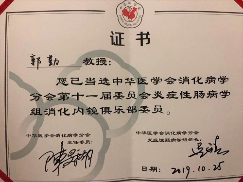炎症性肠病(IBD)在中国是新兴并且发病率呈指数增长的疾病,有绿色肿瘤之称,给社会和患者家庭带来沉重负担,且目前各级医院诊疗水平参差不齐。2019年10月24日-26日,“2019全国IBD学组年会暨亚太消化学会IBD研讨会”在长沙召开,与会期间,中南大学湘雅三医院获批全国首批IBD区域诊疗中心,王晓艳主任作为诊疗中心负责人接受证书,郭勤副教授当选为中华医学会消化病分会IBD学组内镜协作组委员。