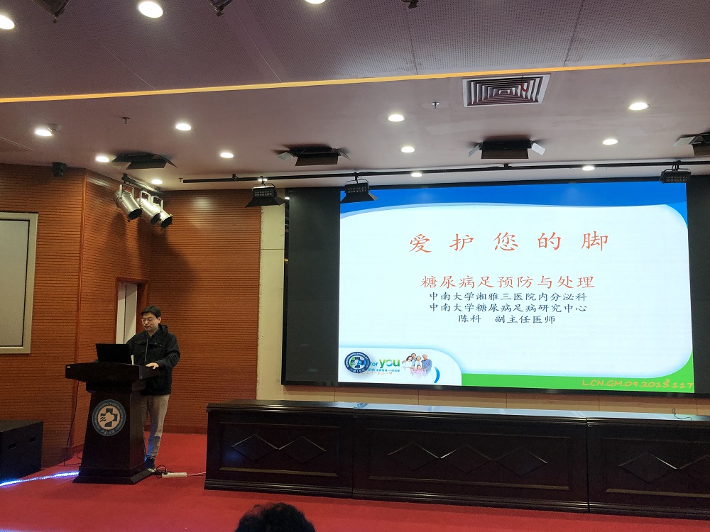 11月14日是一年一度的 “联合国糖尿病日”,而糖尿病作为主要的慢性疾病之一,严重危害人类健康,也给家庭带来巨大重大负担。湘雅三医院内分泌科于2016年成立了中南大学糖尿病足病诊疗中心,每年收治大量难治性糖尿病足患者,在省内外享有不错声誉。以糖尿病足为代表的糖尿病慢性并发症均重在预防,为此,内分泌科在健康宣教方面不遗余力,除了一年一次的大型糖尿病日健康宣教,内分泌科的医护人员每个月会在病房不定期开展面向患者及家人的糖尿病宣教活动,旨在提高大家对糖尿病的认识,防控糖尿病及其并发症的发生发展。