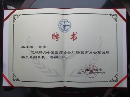 会议进行了中国医师协会肛肠医师分会第四届委员会换届选举大会,经全体委员会民主选举,中南大学湘雅三医院李小荣教授光荣当选中国医师协会肛肠医师分会第四届委员会副会长,并现场获颁聘书。
