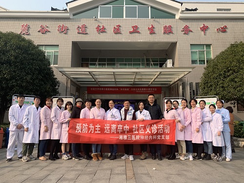 12月14日上午,中南大学湘雅三医院第五总党支神经内科党支部及团支部10余名医务人员在范学军教授的带领下,走进长沙市麓谷街道社区卫生服务中心进行卒中高危筛查义诊活动。