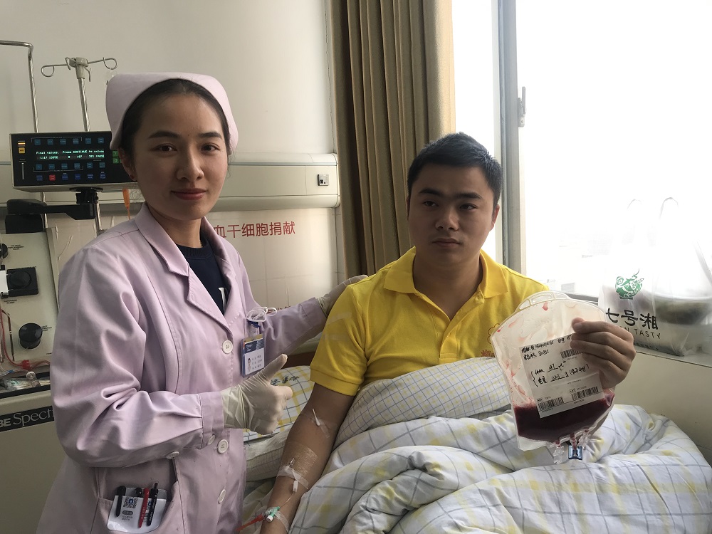 医院血液内科主任刘竞接到通知后予以高度重视,护士长阮春红负责协调医院相关部门保证志愿者在最短的时间内顺利完成各项检查,主治医师李颖立即制定体检方案及HLA高分辨检测和动员计划,主管护师谭思敏负责采集计划的制定与实施。在湘雅三医院、湖南省红十字会、益阳市红十字会等各方合力协助下,志愿者在短短4天内同时完成了高分辨检测、体检和干细胞动员过程。12月16日,湘雅三医院顺利为志愿者黄林采集187毫升外周血造血干细胞,并顺利回输至患者体内。