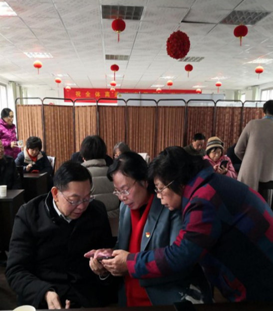 2019年6月5日,考虑到离退休老党员年龄大、体弱多病和不会使用智能手机等困难,党总支书记杨华为老同志们进行了关于“学习强国”学习平台注册及使用的专题培训,三名党支部书记和在职党员现场指导老同志们操作加入平台学习。