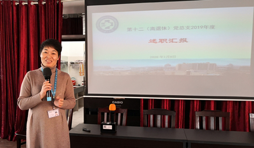 离退休党总支杨华在2019年度离退休党支部书记“双述双评”大会上,表扬了学习积分5000分以上的党员。她提出将组织离退休党员利用“学习强国”平台学习工作列入党总支加强意识形态工作的具体措施之中,打造学习型党总支,努力实现理论学习有收获、思想政治受洗礼、发挥余热有担当、为民服务解难题的具体目标。