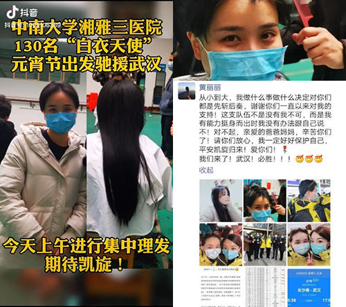 黄丽丽,80后的辣妈,你先生在外地工作,父母孩子是你最大的牵挂。你说:这支队伍不是非我不可,而是我有能力挺身而出时无法对自己说“不”,是的,让我们真的感动泪目。驰援武汉的那天早晨,你对妈妈说:“妈妈,我今天不上班,但是……我——要——去——武汉。”“啊……”妈妈惊出一身冷汗。接到消息的当晚你不敢告诉她,怕她担心,怕她失眠所以来个先斩后奏。妈妈纵使有万千不舍,也希望孩子没有负担上战场,希望孩子平安,含着泪水送出家门。出征前,你剪掉了留了六年的一头如瀑秀发。我看你笑得灿烂如花。在我们心中,就你最美!