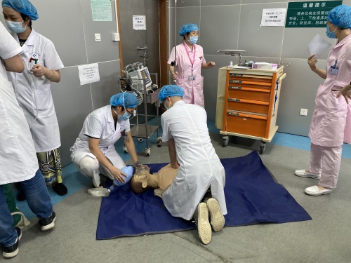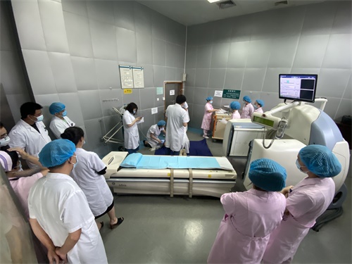 7 月 10 日下午 4 点,在湘雅三医院医务科、急诊科及护理部的配合下,核医学科开展患者心脏骤停应急演练,并由医院护理部钟竹青副主任、医务部刘作良副主任、急诊科肖涛护士长现场指导。开展本次演练,旨在为了提高核医学科医务人员的快速反应及急救处理能力,检验医务人员对心肺复苏以及抢救设备的使用掌握程度,最大限度的降低医疗风险,保障医疗安全。