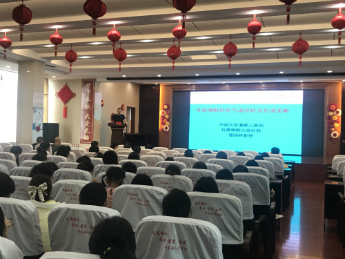 新晃县人民医院是医院对口帮扶的定点医院。本次对口帮扶活动行程紧凑,内容丰富,主要包括了教学查房、手术指导、免费义诊、学术讲座等。19日早7点,谭国林主任、李和清副主任、王天生副主任便带领当地耳鼻喉科全体医护进行早查房,对每一份病历进行详细的查阅,对每一位患者进行充分的沟通,对疑难病例进行深入的讨论,王芳护士长则对患者护理等工作进行了细致的指导。随后,专家博士团全体成员参加了义诊活动,仅一个上午专家们便义诊近200名患者,进行内镜检查及治疗近80人。下午1点义诊结束后,义诊专家们又进手术室对当地医生进行了手术指导。最后,谭国林主任和邱秀红主管护师分别为当地医护人员进行了题为《耳鼻咽喉危险气道评估及处理策略》、《气管切开护理及气管导管的消毒方法》的学术讲座。