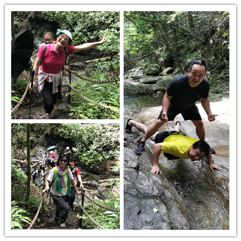 下午大家来到了位于平江县嘉义镇的纯溪小镇进行徒步溯溪,这里地处原始森林,植被茂密、景色宜人;蜿蜒的溪水清澈见底、冰爽透心。大家由峡谷出口一端逆流而上,克服了沿途的各种困难和挑战,最终顺利的抵达终点。这一路上潺潺溪水相伴,欢声笑语不断,虽然大家的衣服都被汗水浸透,但互相照顾、团结协作的精神早已深入人心。