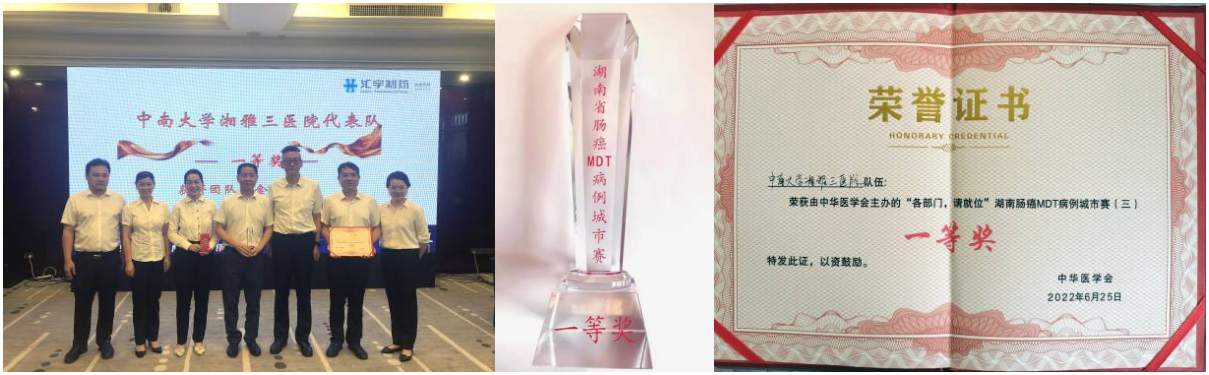 6月25日,中南大学湘雅三医院胃肠肿瘤MDT团队在中华医学会组织的“各部门,请就位”肠癌MDT系列交流会湖南省肠癌MDT病例城市赛荣获一等奖。