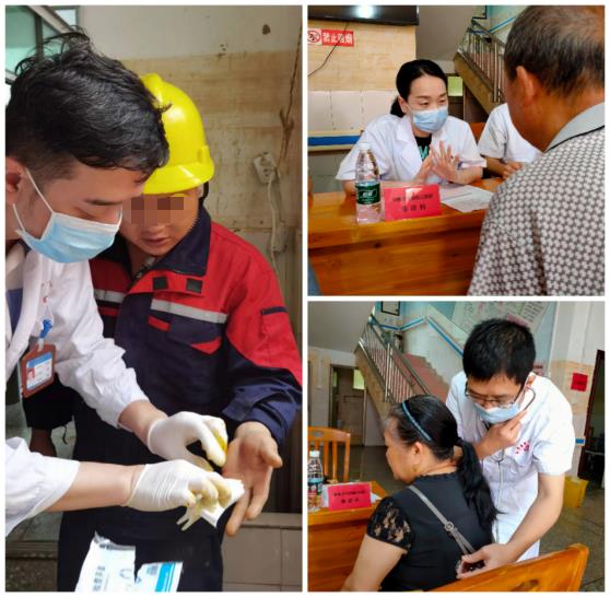 “您好,我们是湘雅三医院的医生,从长沙来的,为大家义诊,身体有什么不舒服的地方都可以告诉我们。”庄权简单的开场白,让灾民们卸下心理防备,靳欣同志用地道的方言和大家交流,让大家倍感亲切。医护人员们耐心细致地为每一位就诊灾民进行体查和诊治,认真解答乡亲们关于灾后常见病、多发病的预防及治疗等相关问题,并对灾后疾病防治知识进行了宣传。