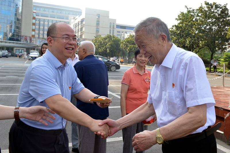 7月1日,中南大学湘雅三医院在庆祝建党101周年“七一”升旗仪式后,医院党委举行了“光荣在党50年”纪念章颁发仪式。医院党委书记何庆南,党委副书记杨飞龙,党委副书记、纪委书记张劲强为文德华、周美红两位老党员颁发“光荣在党50年”纪念章,医院部分老领导老党员、党委办公室、第十二党总支、离退休办公室负责人参加。