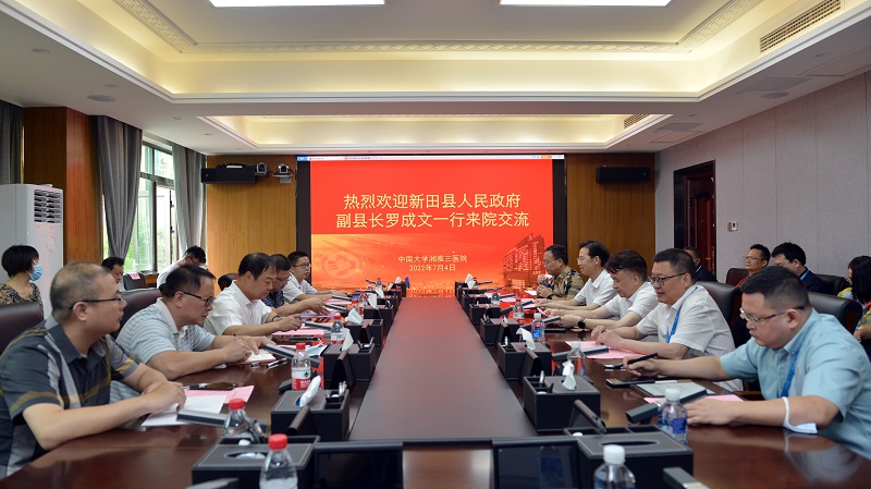 7月4日上午,新田县人民政府副县长罗成文一行12人来院交流医联体建设及相关工作。中南大学湘雅三医院党委书记何庆南,院长张国刚,党委委员、副院长欧阳文出席座谈会,相关临床科室主任、职能部门负责人参加,座谈会由社会服务中心主任刘伶主持。