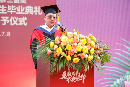 在热烈的掌声中,张国刚院长发表讲话,他对同学们在湘雅三医院求学期间不懈努力和所取得的成绩表示肯定和祝贺,并寄语全体毕业生:一要坚守初心,高擎理想之灯,二要牢记使命,终身学习成长;三要奋发有为,勇担医者使命。
